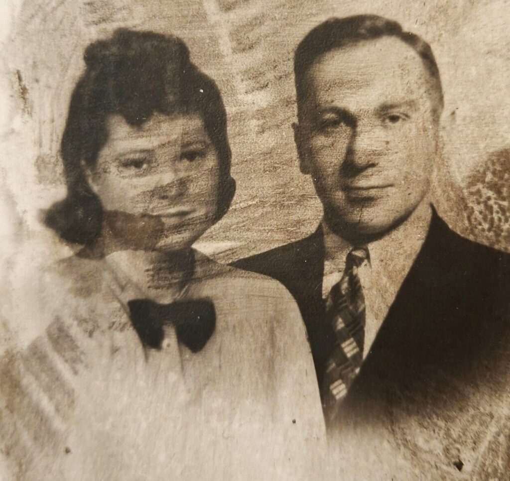 The image above shows my grandparents – my mother’s mother and father. As you can see, the photograph is damaged. It was scarred in the fire of 12.12.12.